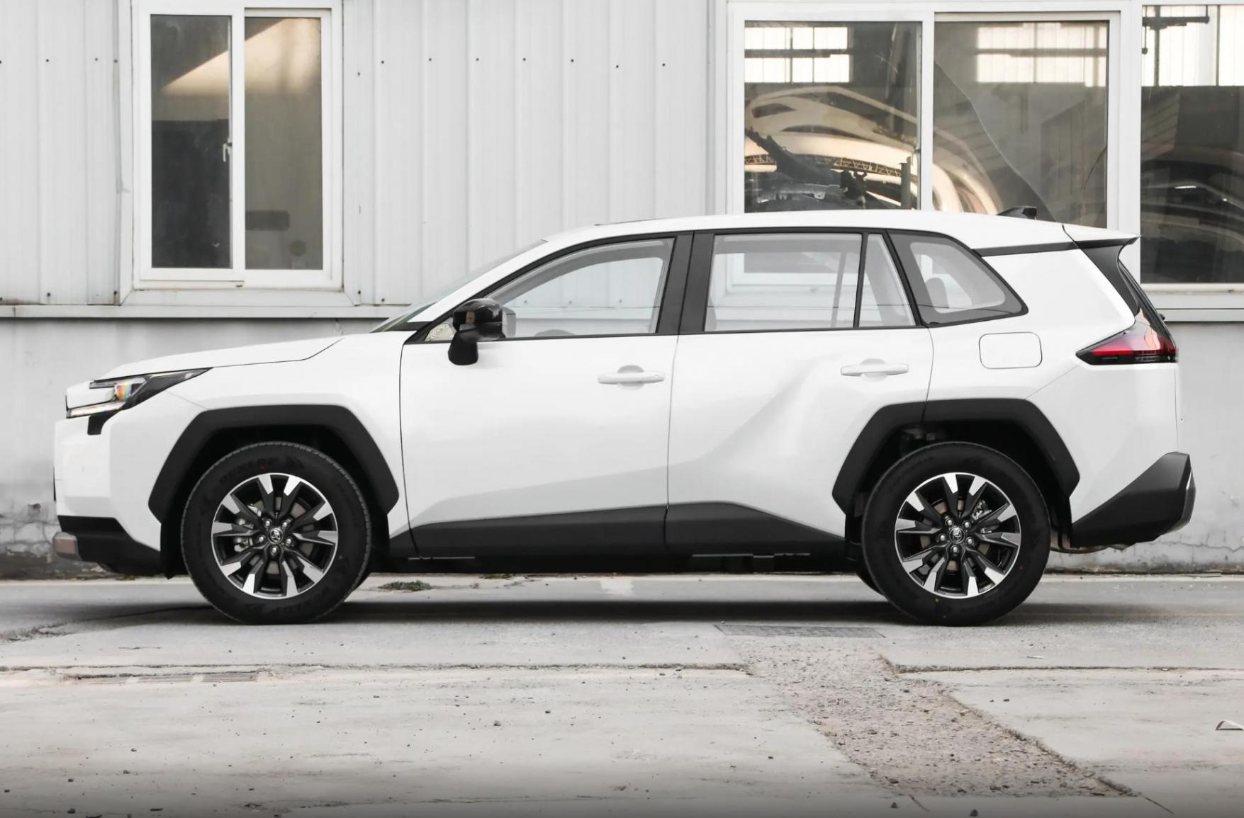 车身侧面,荣放保留了标志性的悬浮式车顶设计,黑色立柱和车顶行李架让视觉效果更修长,腰线从前翼子板一路延伸到尾灯,外扩的轮拱让车身看起来更有力量感。轮毂方面有17到19英寸三种尺寸,顶配车型还提供双色切削轮毂、并且做了低风阻设计,既提升视觉效果,也有助于降低油耗。车尾的设计和前脸呼应,横向线条层次感很强,显得宽厚稳重。熏黑尾灯组、C字形LED光源是亮点,夜晚辨识度很高。尾灯上方有一个小扰流板,底部配黑色包围和银色护板,还点缀有红色反光条,夜间行车更安全。更令人欣慰的是风阻系数降到了0.32Cd,加上车身轻量化,真正为低油耗铺垫基础。配色方面,2026款新增春野绿和晴空蓝,和极地白、墨渊黑、铂青铜一起,总共5种选择。春野绿在春日阳光下显得清新,挺适合踏青场景。