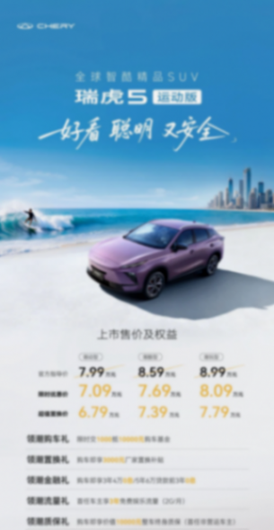 相比瑞虎7L和全新瑞虎7,瑞虎 5 运动版瞄准的更多是首购年轻群体,这款定位全球智酷精品SUV的新车,用7万级价格带来了越级产品力,也是年轻人的第一台精品SUV之选。