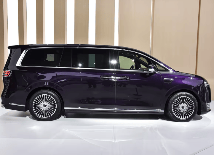 外观方面,V9采用家族化设计语言,整体气场十足。前脸为封闭式格栅,搭配贯穿式星环日行灯,中间融入可发光品牌LOGO,有效拉伸了横向视觉宽度。更亮眼的是,新车首次搭载新一代DLP投影大灯,可实现迎宾光毯、转向辅助投影等功能,科技感拉满。车身侧面线条修长流畅,贯穿式腰线搭配镀铬饰条,凸显豪华质感,密辐式轮毂更添稳重气质。车尾设计简约大气,贯穿式晶钻尾灯造型宽厚,内部星光璀璨,与前脸呼应,辨识度极高。车身尺寸为5359/2009/1879mm,轴距达3250mm,七座布局保障了宽敞的驾乘空间。