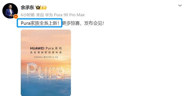 余承东在社交平台上表示,这次Pura家族将:全系上新。