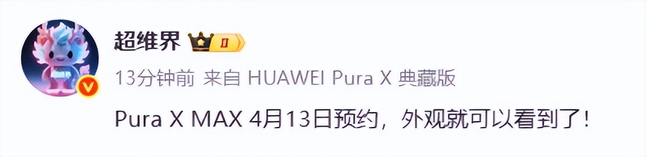 有博主爆料,Pura X Max将于4月13日开启预约,届时将公布其外观设计。