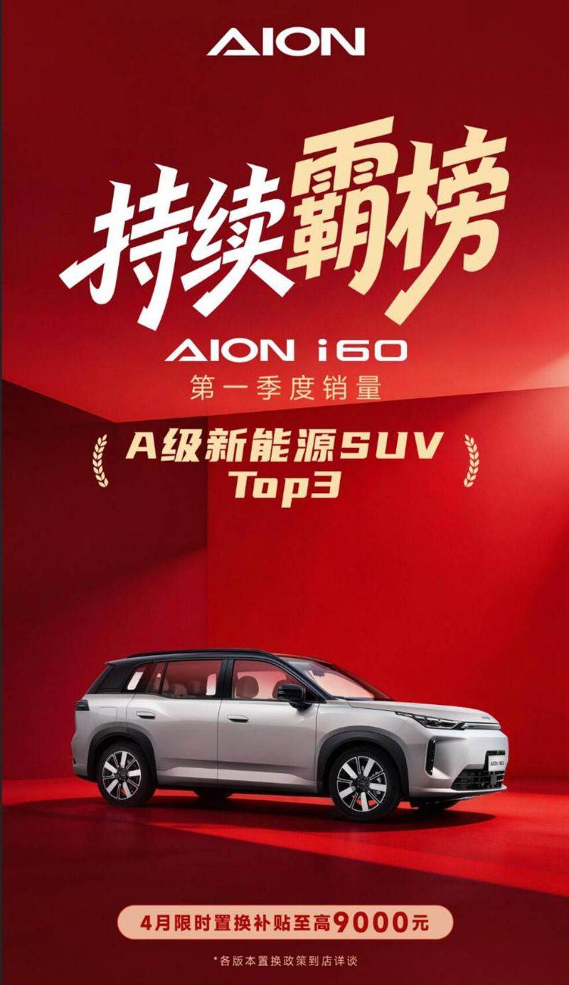 新能源紧凑型SUV市场中, AION i60是不能不提的“黑马”车型,该车型自2025年11月上市以来,销量表现快速攀升。今年以来,号称“国民刚需大五座SUV”的 AION i60,连续三个月稳居榜单前列,其中,3月闯进前五“主流圈”,排名第四位,零售销量达到10838辆,轻松破万,成为新能源紧凑型SUV市场妥妥的“尖子生”。