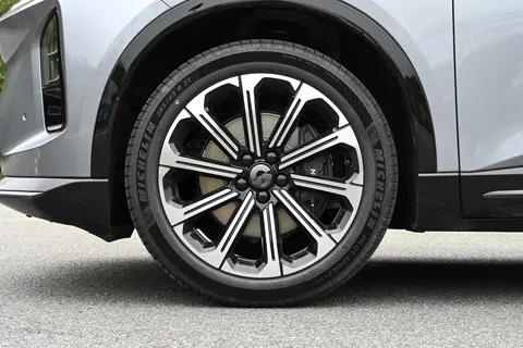 外观方面,新款没有大改,但细节上的升级特别显质感,实车比图片好看太多。全新升级的Moon 3.0外观套件,用的是更纯粹的哑光黑色,不像有些车型的哑光漆,容易沾灰还显廉价,这款的哑光黑质感很细腻,阳光下能看出淡淡的光泽,不浮夸但很有高级感。搭配20英寸多辐织雪熏黑轮圈,整车的运动感和精致感都提升了不少,尤其是侧面看,线条很流畅,没有多余的设计,显得很大气,不管是男生开还是女生开,都不违和。