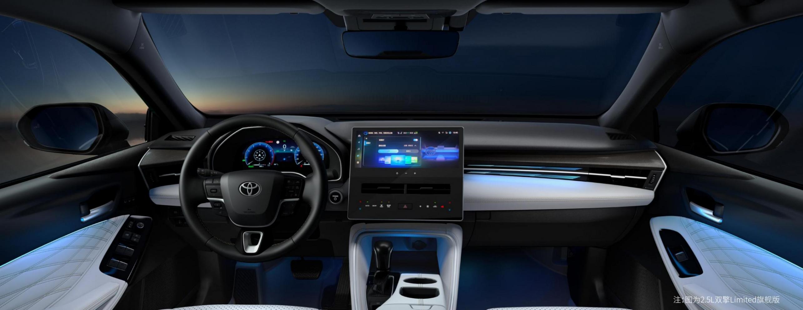 全系标配12.3英寸悬浮式中控屏与全液晶仪表盘,屏幕显示清晰,反应流畅。搭载高通骁龙8155芯片,解决了老款车机卡顿的问题。车机系统支持5G网络、高精度语音交互,通过“你好,丰田”即可唤醒,可实现导航、空调调节、多媒体控制等功能,支持“可见即可说”,操作逻辑简单易懂。同时兼容CarPlay、HiCar、CarLife等手机互联,满足不同用户的使用习惯。高配车型还配备HUD抬头显示,将车速、导航等关键信息投射在前挡风玻璃上,开车不用低头看仪表,安全性更高。