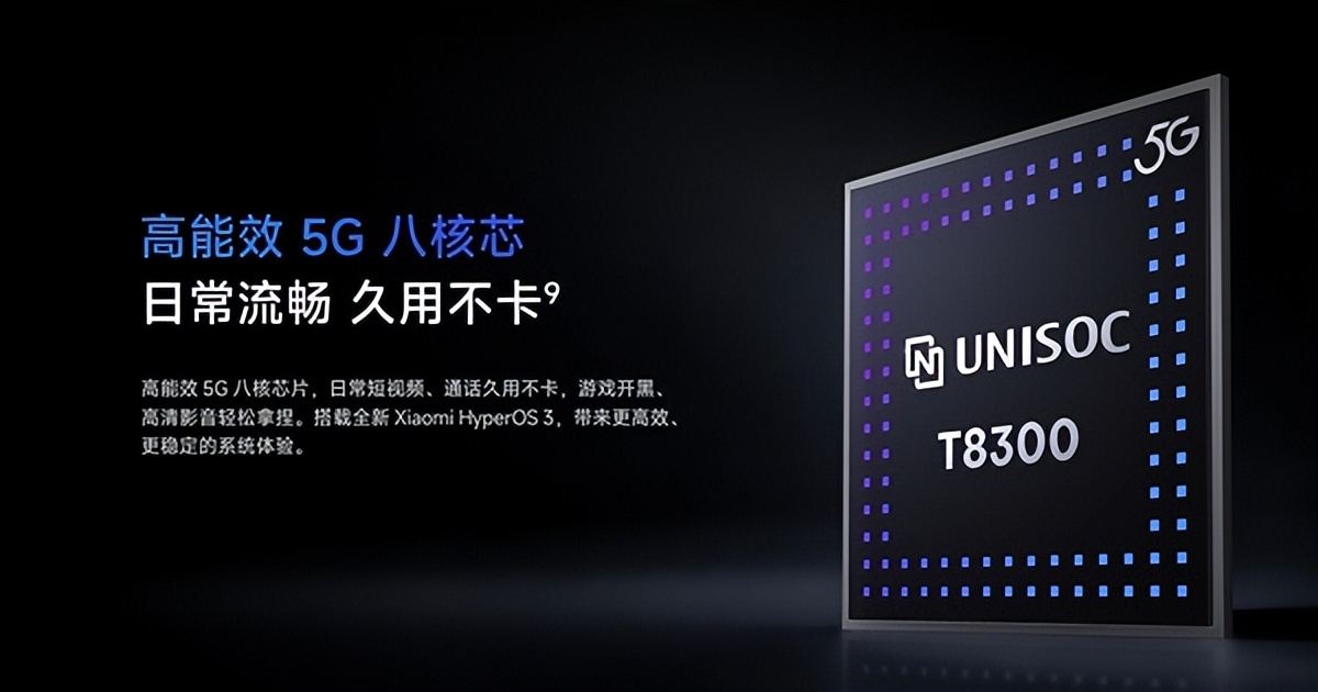 核心性能方面,新机搭载了紫光展锐在2025年3月发布的T8300芯片。这颗5G芯片采用了6nm制程工艺,拥有八核架构,由2个A78大核与6个A55小核组成。