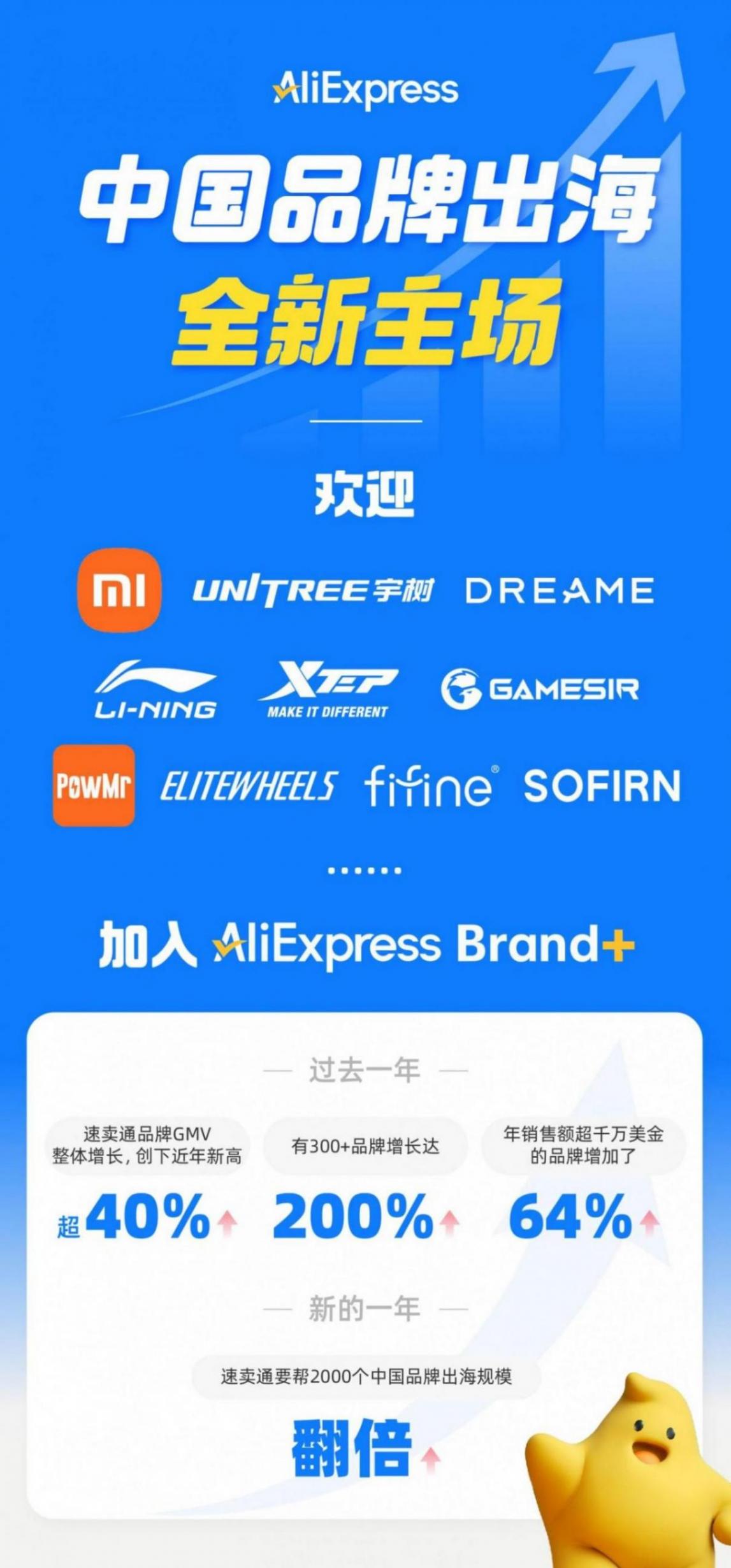 其中,宇树、追觅、李宁、特步四大品牌现场签约加入了速卖通“Brand+”超级品牌出海计划。小米此前已率先签约,并明确表示速卖通是其2026年出海首要阵地。
