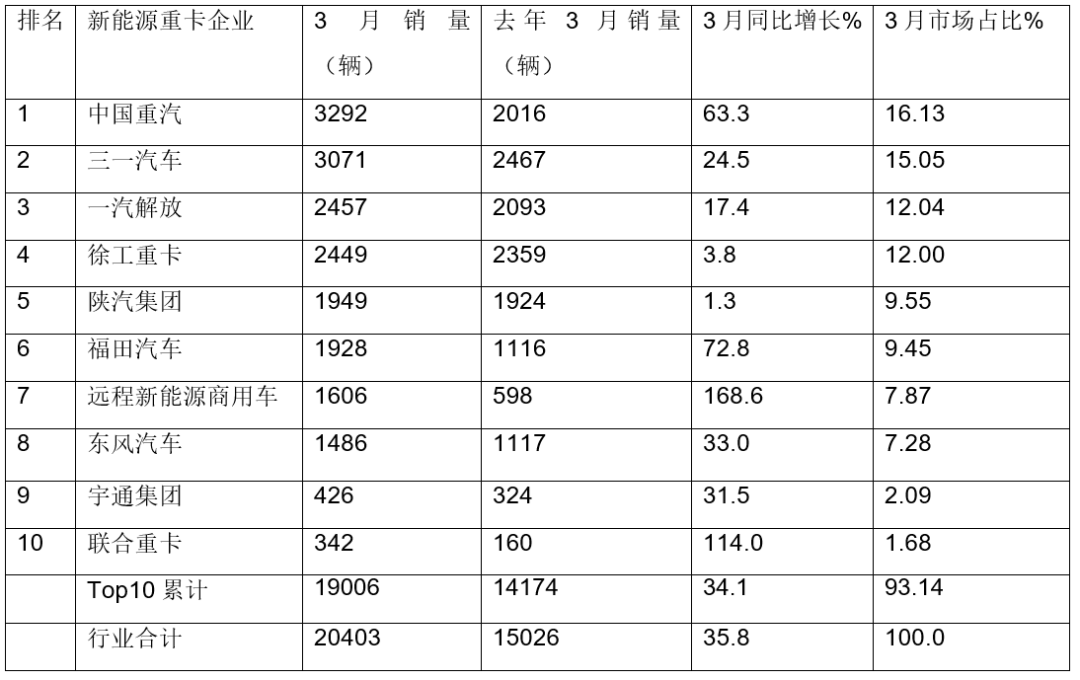 表4,根据终端上牌数据,2026年3月新能源重卡销量Top10排行: