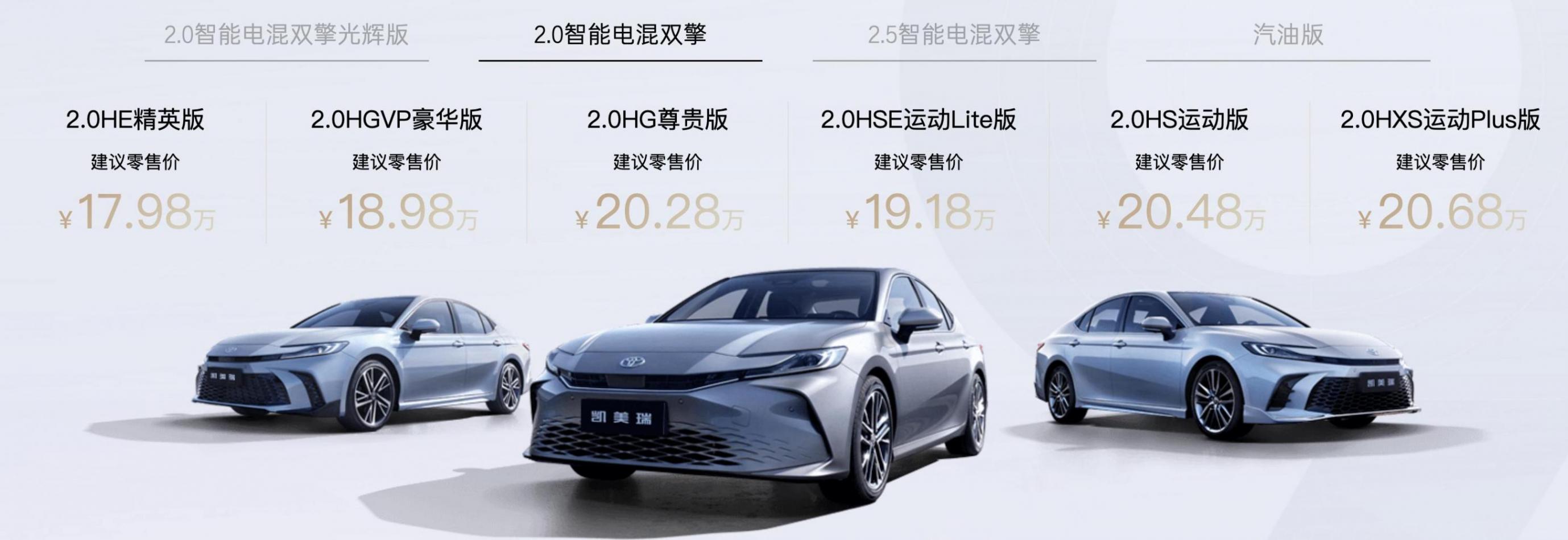2026 款的广汽丰田凯美瑞在海外版发布 2 个月后准时上新,一共推出了多达 15 个版本,售价区间为 17.18 万元至 25.98 万元。