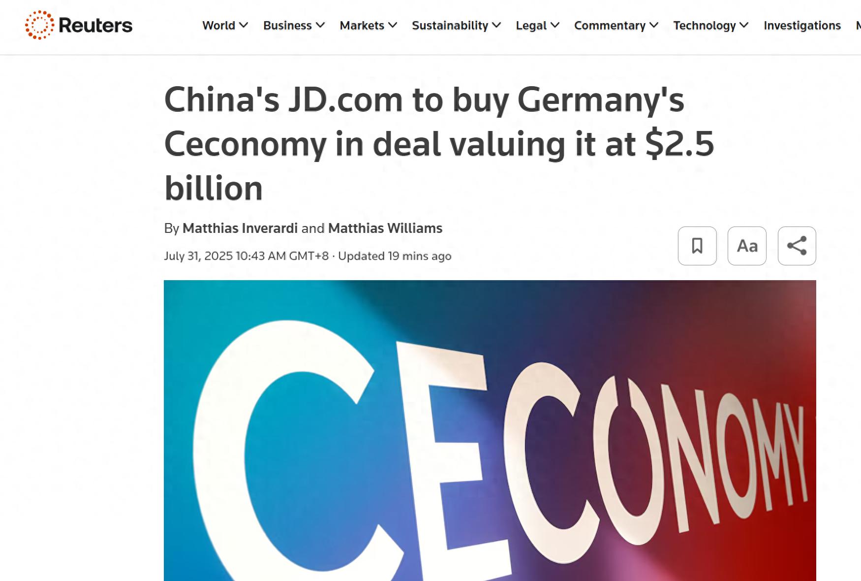 业内人士指出,若此次交易顺利完成,将创下中国电商企业在欧洲市场的并购新纪录。京东有望通过整合CECONOMY的实体零售网络,进一步构建线上线下协同发展的零售体系,强化在欧洲市场的本地供应链能力,为当地消费者带来更优质的服务体验。(纯钧)