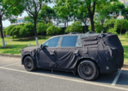密辐式的枪灰色轮圈,搭配高规格轮胎,预计可选21英寸及以上规格,视觉观感十分稳重。轮拱处未见宽体外扩迹象,说明整车仍以城市型SUV属性为核心。