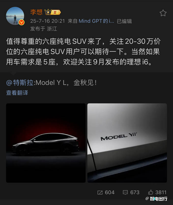 CEO李想曾评价Model Y L:值得尊重的六座纯电SUV来了,关注20-30万价位的六座纯电SUV的用户可以期待一下。