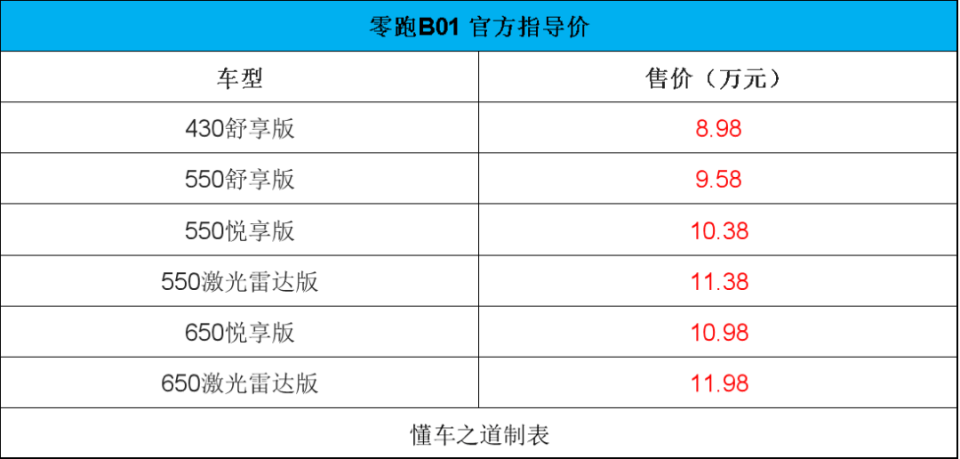 新车上市三: 零跑B01