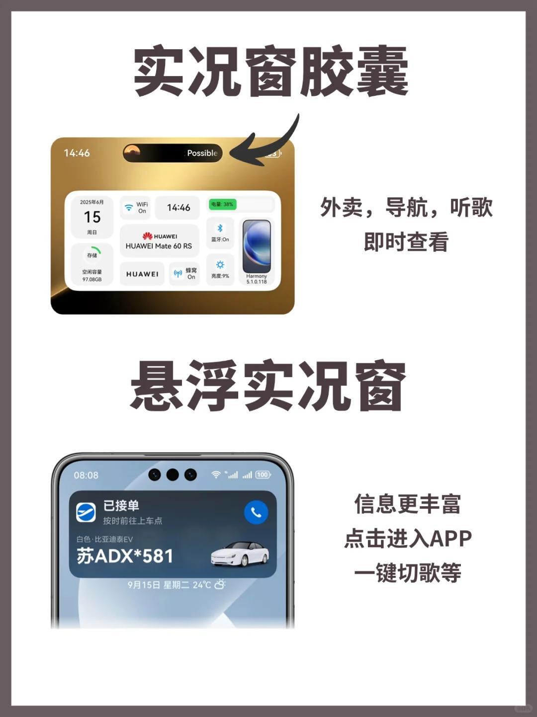还有全新的实况窗功能,让我在出差时提供了很多便利。这个功能会在锁屏界面、消息中心、通知栏等界面,通过动态卡片、胶囊的形式,实时展示各种信息,包括倒计时、导航、外卖、打车、飞机、高铁等。像我乘坐高铁、飞机等时候,我只需要把手机掏出来扫一眼,就能知道高铁车次或航班信息,并同步前往对应的安检口;在安检之前,我也只需要点击动态卡片,就能快速打开电子机票或车票,整个过程优雅从容,特别是带着大包小包行李的时候。