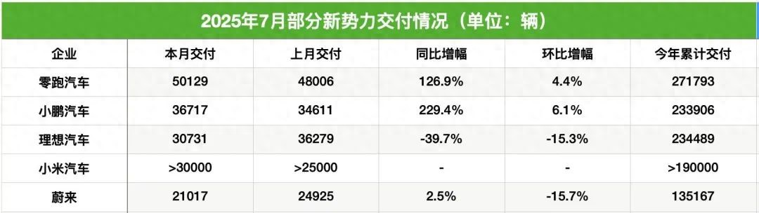 8月1日,不少新能源汽车品牌都公布了7月的“成绩单”。