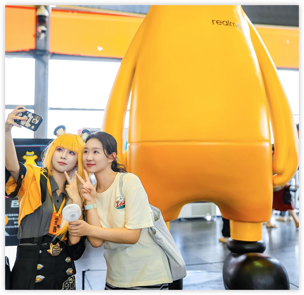 在ChinaJoy展会现场,其中观众打卡的地方就是位于观众入口处的巨型真奇喵装置,凭借其潮酷的造型成为一道亮丽风景线,引得大量真粉和玩家驻足合影,真我「拿捏」了。
