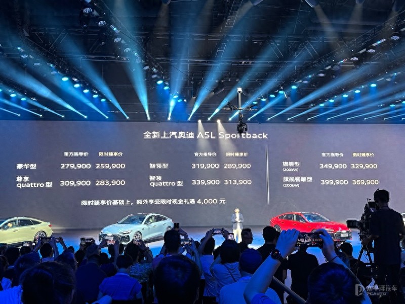 8月1日,上汽奥迪A5L Sportback正式上市,新车共推出6款车型,限时臻价区间25.99-36.99万元。上汽奥迪A5L基于PPC平台生产,搭载第五代EA888Evo发动机,最大功率200千瓦,配备48V轻混系统,搭载quattro智能四驱和CDC运动悬架。另外,新车还将搭载华为驾驶辅助系统,配2颗激光雷达。