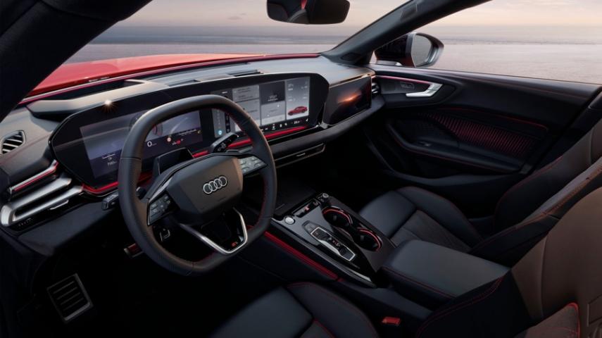 座舱内部采用奥迪新一代智能豪华布局,打造“五屏联动”的数字交互界面,车顶配备PDLC可调光全景天幕,支持9域独立调光分区。车内30×30色氛围灯具备场景化动态光效提示功能。