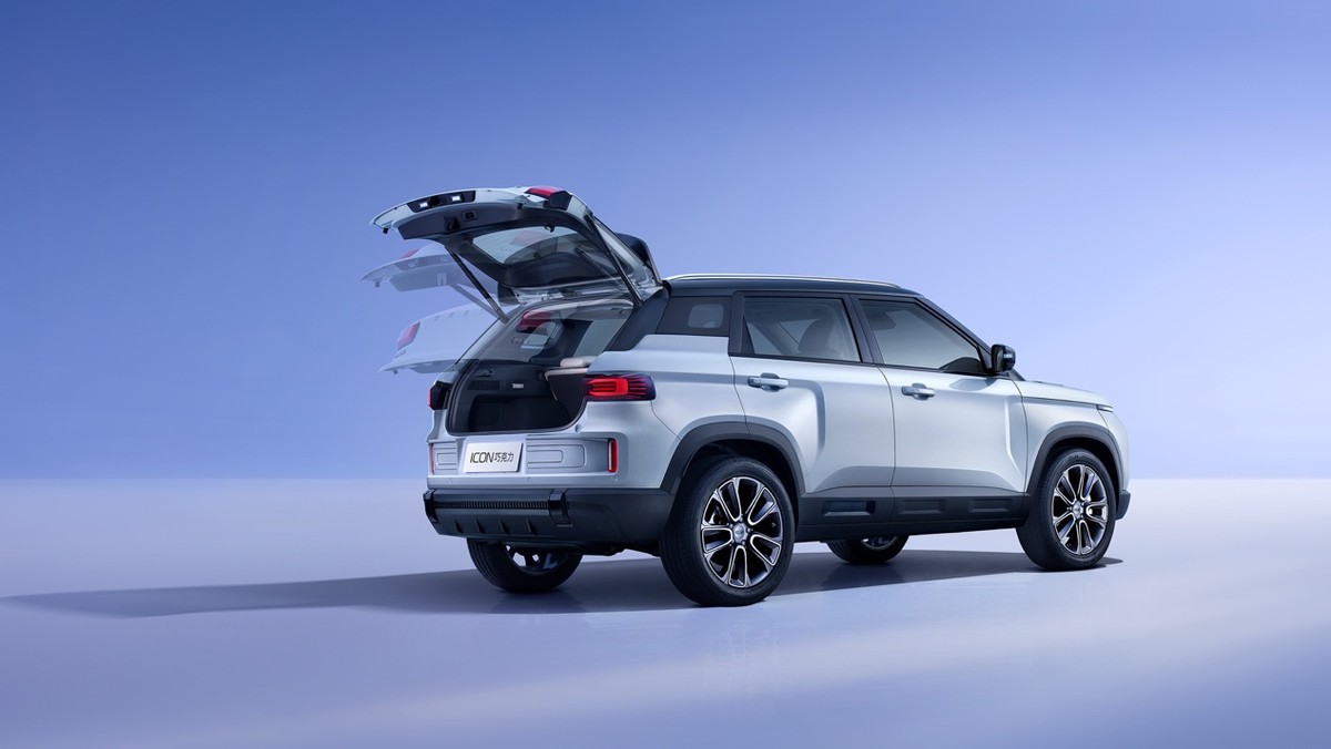 车身侧面,2026款吉利ICON巧克力回归传统门把手设计,搭配熏黑处理的车顶、侧裙、轮眉等,时尚氛围还是烘托得很到位。不过,2026款吉利ICON巧克力取消了19英寸轮毂的选配。车身尺寸维持老样子,长宽高分别为4350/1815/1620mm,轴距2640mm。车尾部分,2026款吉利ICON巧克力采用与前脸相同的设计语言,让整车看起来更加协调。