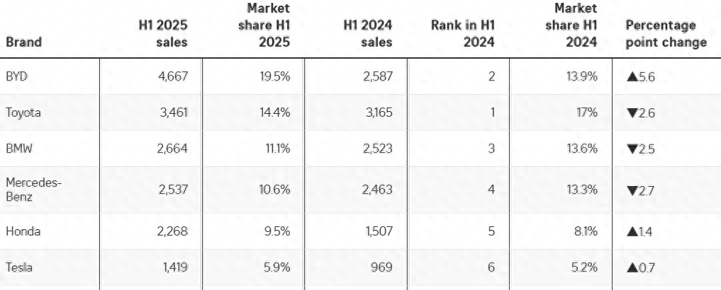 有新媒指出,上半年,新加坡新车注册总量为23957辆,较2024年同期的18576辆,增长了29%。这些增长源于更多品牌的激烈竞争,而这些品牌几乎全部都是专注于电动汽车的中国车企,比如去年上半年后进入新市场的深蓝、东风等品牌。