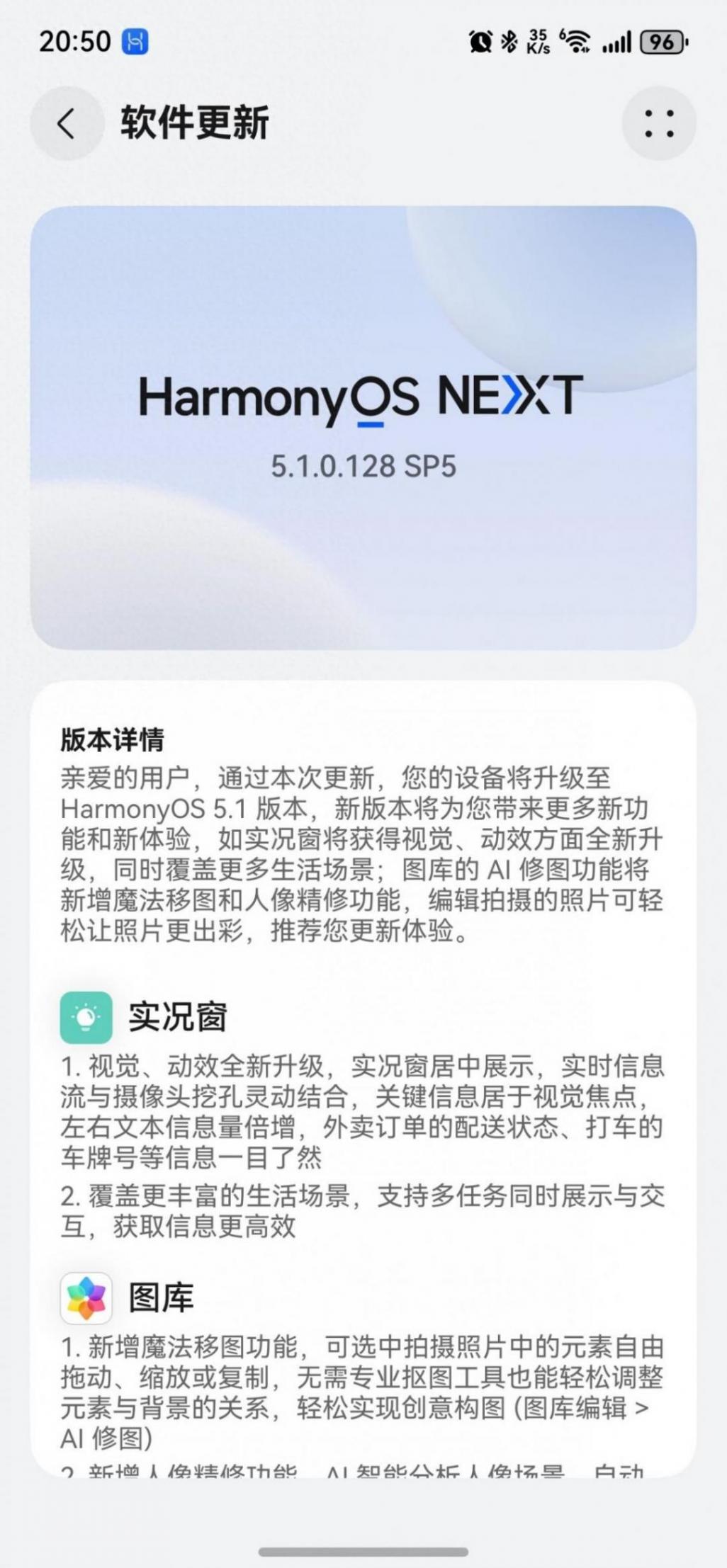 而从推送内容看,华为确实花了不少心思——相机拍照体验、动画细节优化、界面显示调校、系统运行流畅度……