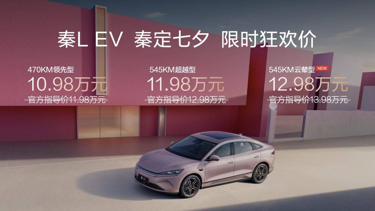 即日起至 9 月 30 日,秦 L EV 全系车型开启限时售价,价格区间为 10.98 万 - 12.98 万元。