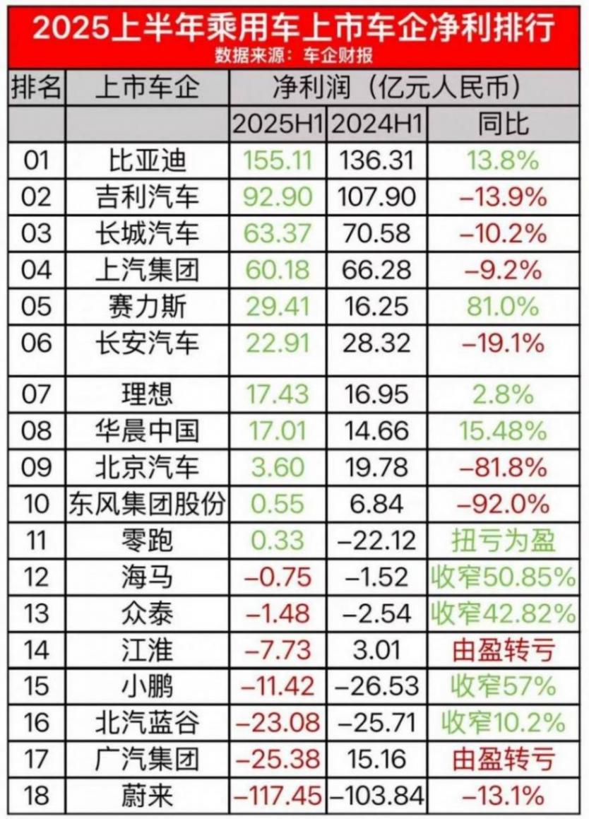 近期,18家国内乘用车上市车企陆续披露了2025年上半年财报。看完这18份车企财报,相较于“还算过得去”的营收部分,笔者其实更加关注它们的净利润。毕竟,“卖得多不一定赚得多”这已然成为了业内共识。