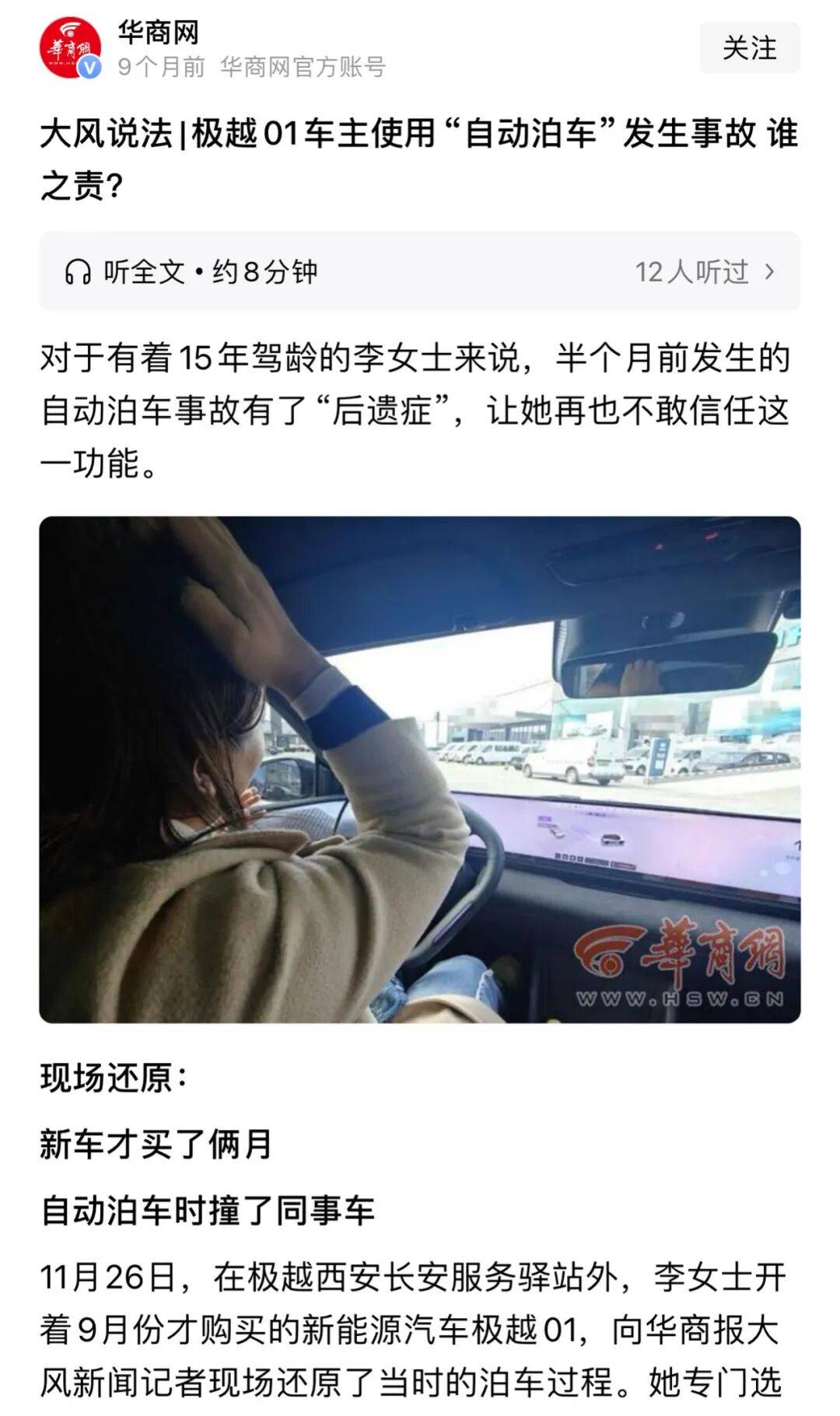 在这一背景下,很多新势力品牌在泊车过程中出现意外的不胜枚举。特别是一些品牌可以做到驾驶员直接下车走人,头都不回看似潇洒,而车辆在“自己”泊车的过程中前后方突然出现一些难以识别的物体时,就可能出现剐蹭,一旦产生事故保险公司都是拒赔的,这样的事例并不少见。