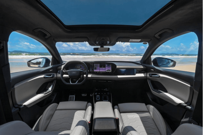 此外在智能体验上,Q6L e-tron配备奥迪最新一代智能座舱与全场景智能驾驶辅助系统,进一步体现了豪华的科技温度。自然语音交互、车家互联、沉浸式娱乐体验,不仅是科技的堆砌,更是奥迪将“豪华”注入科技细节的方式。无论是繁忙城市中的智能辅助驾驶,还是高速长途中的轻松操控,智能化都在无形中释放驾驶与出行的舒适感。