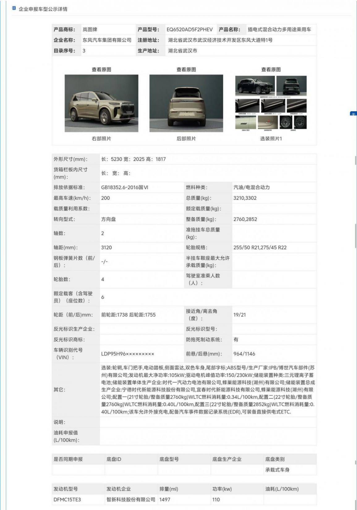 近日,岚图品牌旗下一款旗舰级SUV出现在了工信部新一期新车申报目录之中。与此同时,岚图官方也发布了这款新车的官图。
