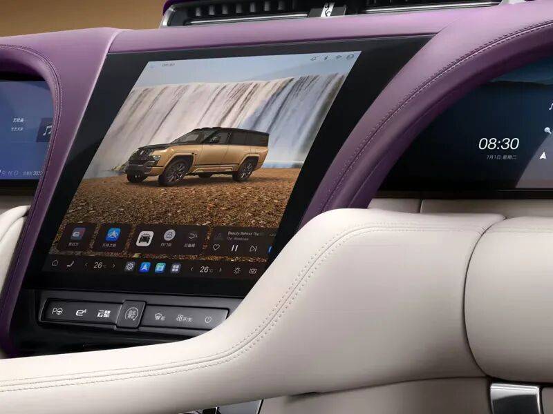 然而百万级的豪车,对于内饰的打造肯定有自己独有的风格。车内不管是布局还是科技感,仰望U8L鼎世版都必须拉满,23.6英寸液晶仪表屏+12.8英寸中控屏+23.6英寸副驾娱乐屏,让科技感毫无违和感。此外,门板处的丹拿铂金系列Hi-End级音响的扬声器,以及二排座椅上有集成的扶手屏等等,都能够充分的说明,这台车除了针对主驾驶体现豪华以外,还强调了多区域乘员所能感受到同等的豪华感。
