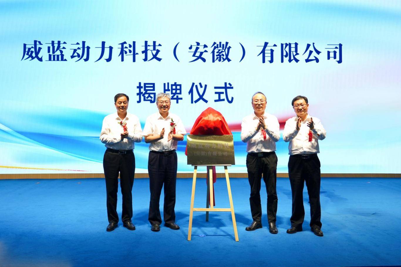 【从左至右:全柴集团董事长谢力、奇瑞控股集团有限公司党委书记、董事长尹同跃、安徽省政协副主席张祥安、滁州市委书记吴劲共同为威蓝动力揭牌】
