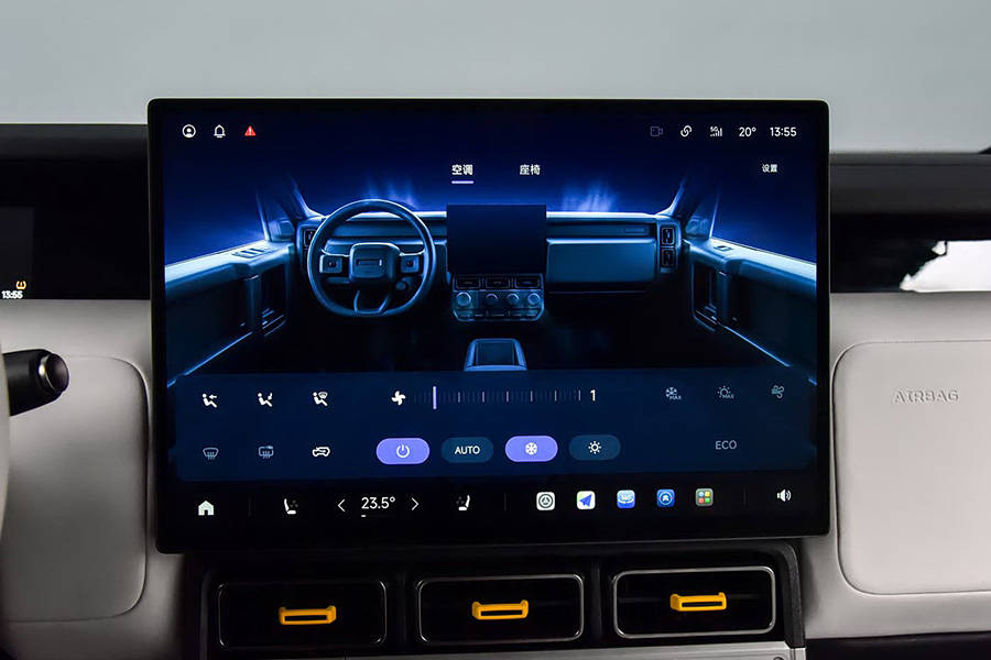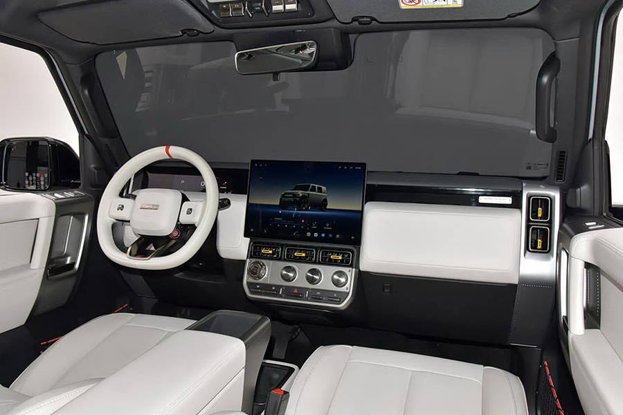 内饰设计风格上没有发生变化,新车采用白色内饰,白色方向盘上拥有回正环的同时还搭配了驾驶模式按钮以及S标识。新车依旧配备全液晶仪表盘以及15.4英寸悬浮式中控屏,其下方配备了三连出风口以及各种旋钮式物理按键。