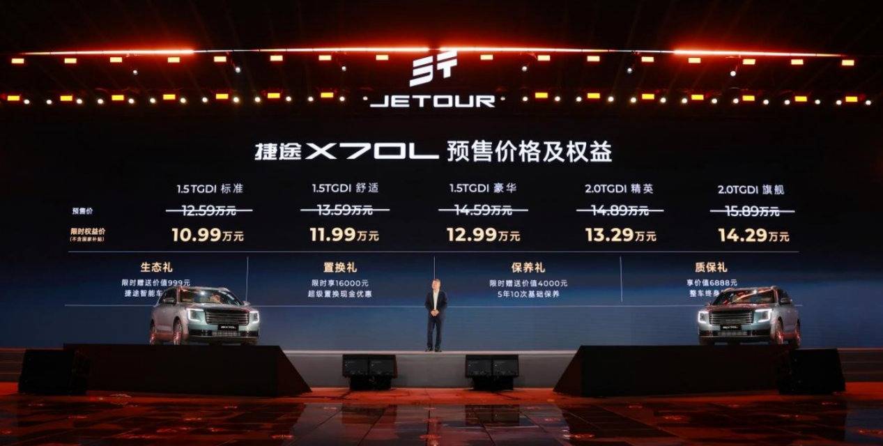 近日,捷途汽车官方宣布捷途X70L正式开启预售。新车共推出5款配置车型,官方预售价区间为12.59万元-15.89万元。不过,最吸引眼球的当属预售限时权益,只需10.99万元起,就能将这台中型SUV开回家。新车提供1.5T和2.0T两种动力选择,并且带来了5座与7座两种空间布局。