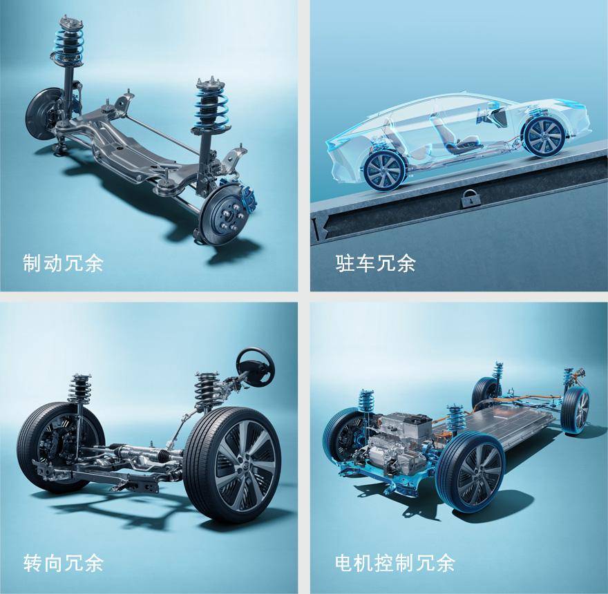 此外,bZ5 还在『控制安全』上构建了四大冗余:制动冗余(双制动系统,即使单一系统故障,另一系统也能正常工作)、驻车冗余(双重驻车机构,防止停车后溜车)、转向冗余(双电机控制转向,避免转向失效)、电机控制冗余(双控制器监控电机状态,确保动力输出稳定)。『看不见的配置』虽不直接面向用户宣传,却在关键时刻为行车安全兜底,体现了丰田『不忽视任何安全细节』的造车理念。