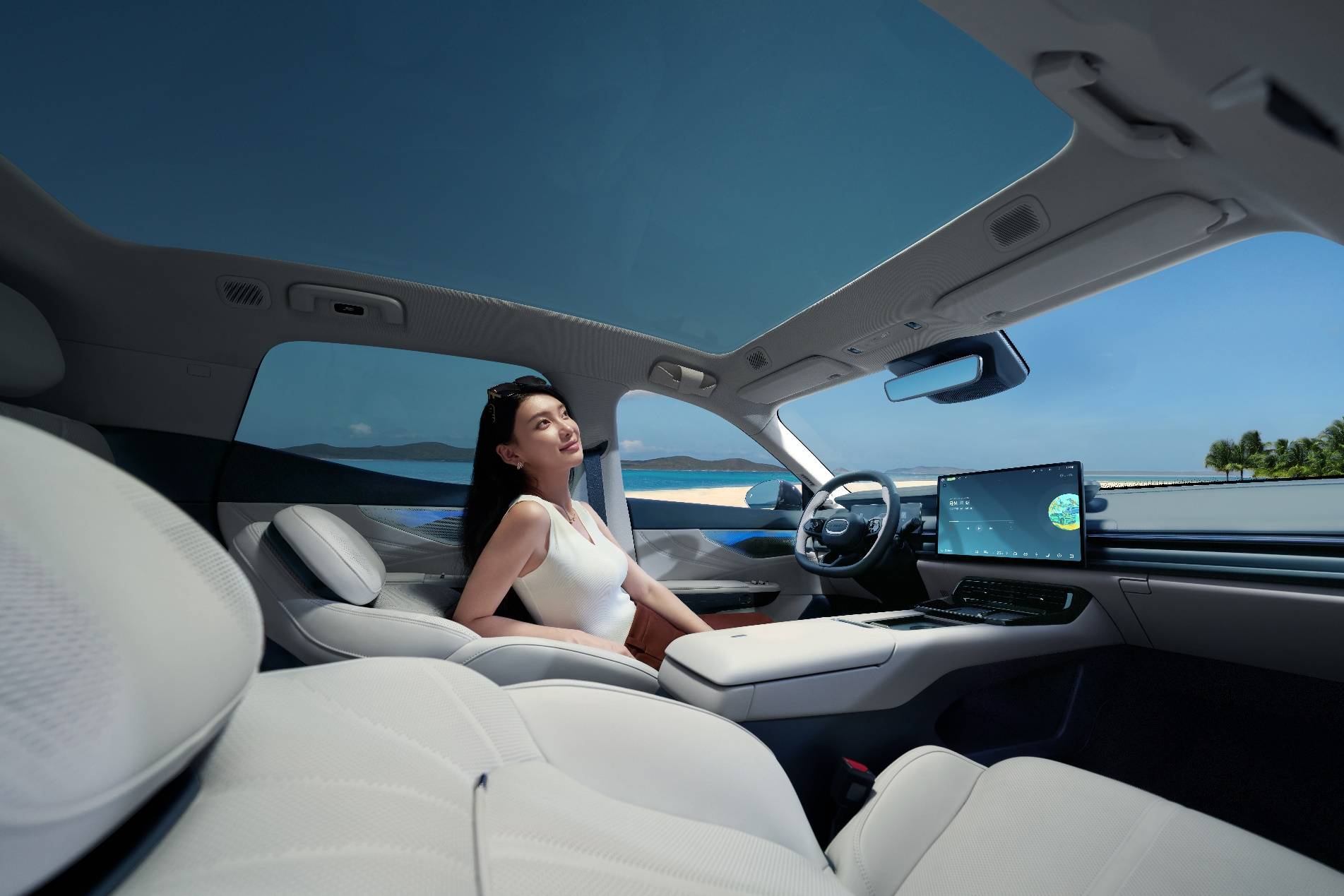 此外,全新07 EM-P室内侧玻璃表面采用Low-E低辐射玻璃方案,1.9㎡四层隔热防晒天幕紫外线隔绝率更是≥99.9%,整车隔音又隔热,尽享惬意时光。