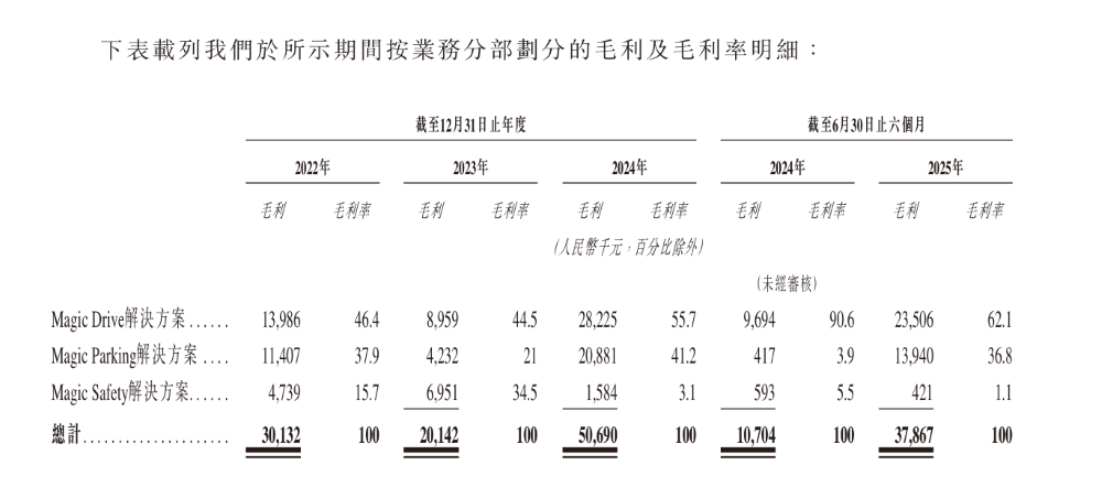 ▲魔视智能按业务分部划分的毛利及毛利率明细