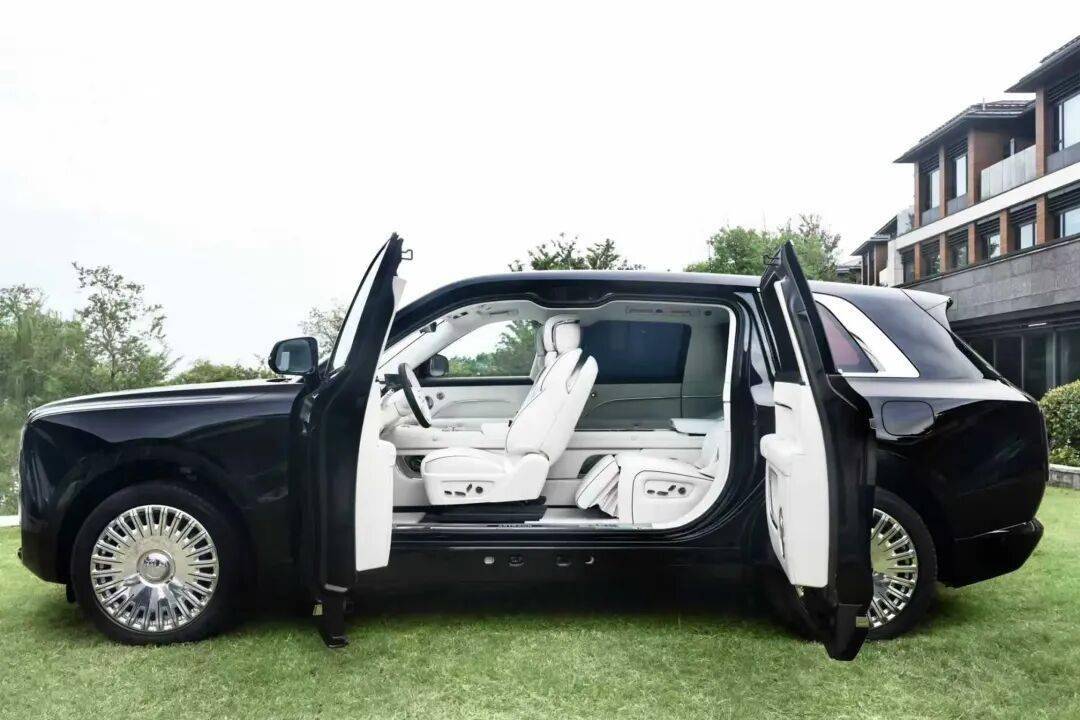 从外观来看,其外观十分霸气,大尺寸镀铬格栅搭配细长的大灯组展现很强的气场,配合镀铬轮辋,整车造型风格和车身比例与劳斯莱斯库里南相似,车尾采用纵向排列的尾灯设计独特,与车身整体风格相呼应,点亮后辨识度极高。同时,这款SUV还采用无B柱车身结构和对开门设计,使用2+2式四座布局。据了解,新车车内有效空间长度3.7米,二排配备独立航空头等舱座椅,支持145度大角度调节,腿部空间可达1.2米。