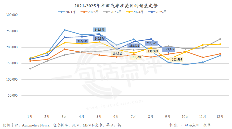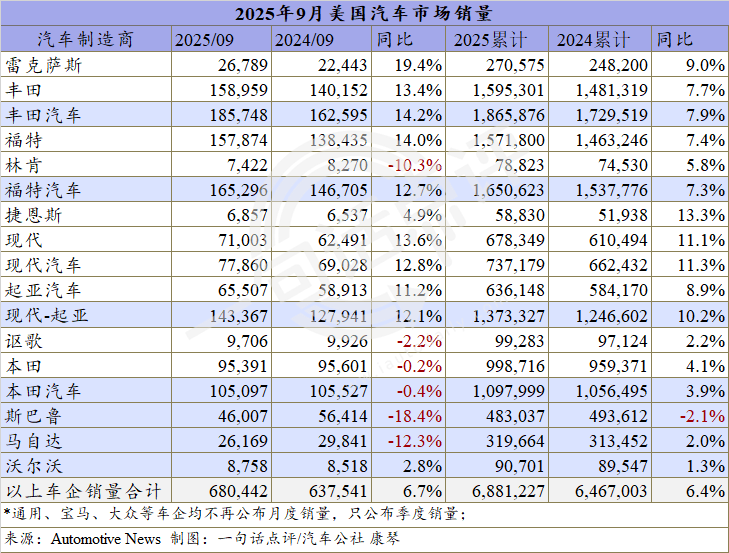 ●本田汽车由于旗下电动车数量较少没有享受到电动车税收抵免政策最后的红利,而且部分重要车型因需从加拿大和墨西哥进口导致价格上涨,所以不仅9月同比微跌0.4%,受8月走跌5.2%的影响,三季度同比也下跌2.0%,幸而上半年创造了近5万辆的优势,前三季度仍增长3.9%。