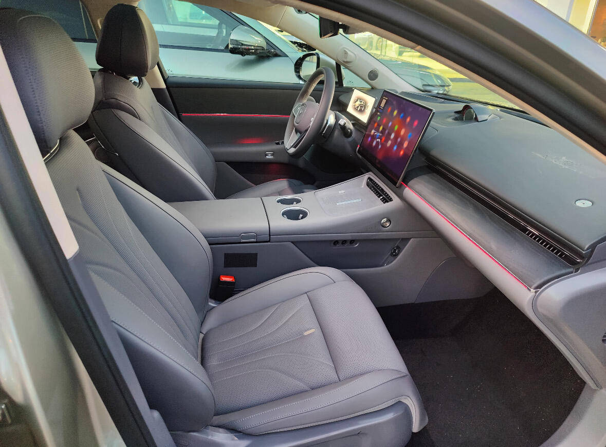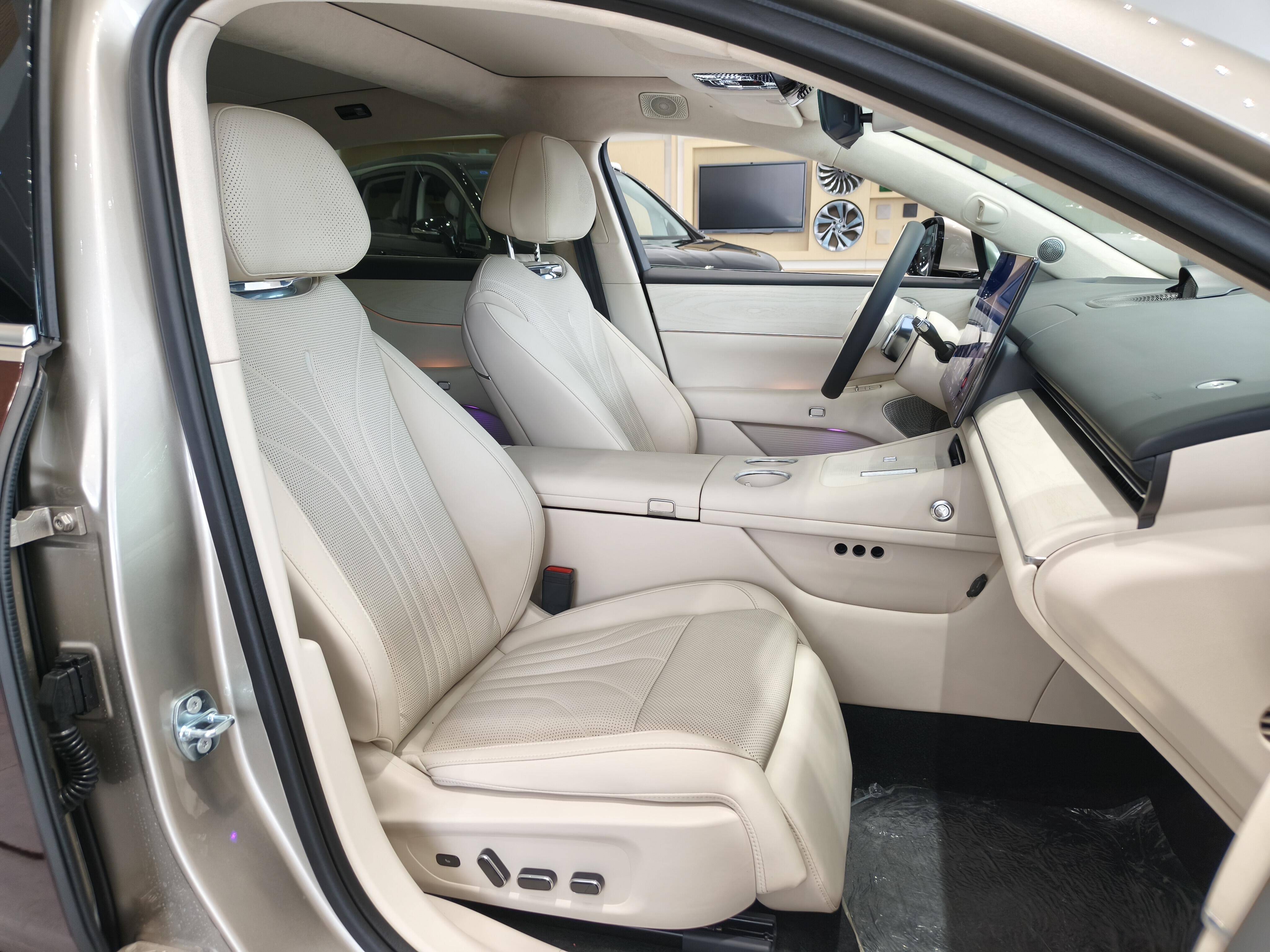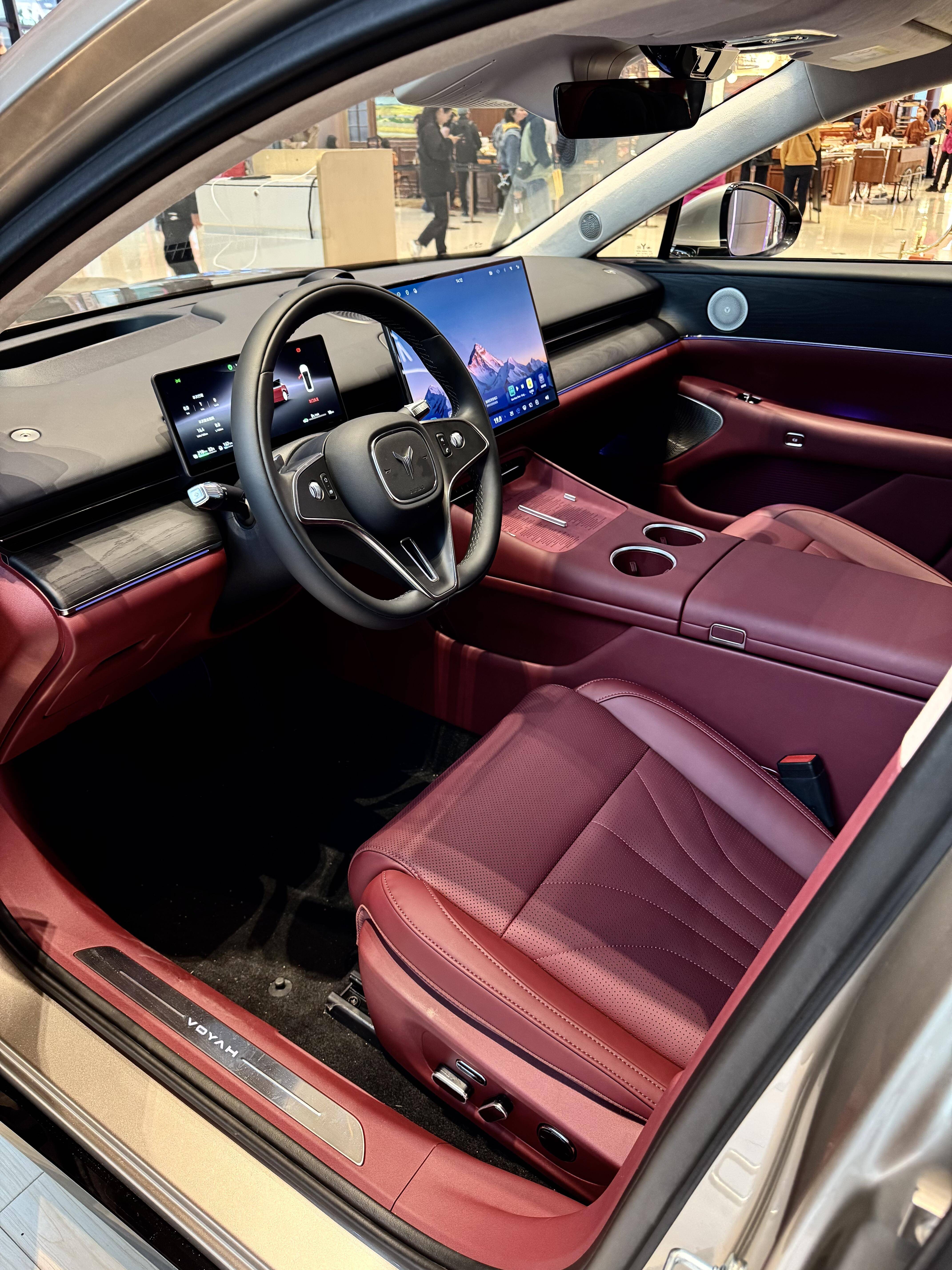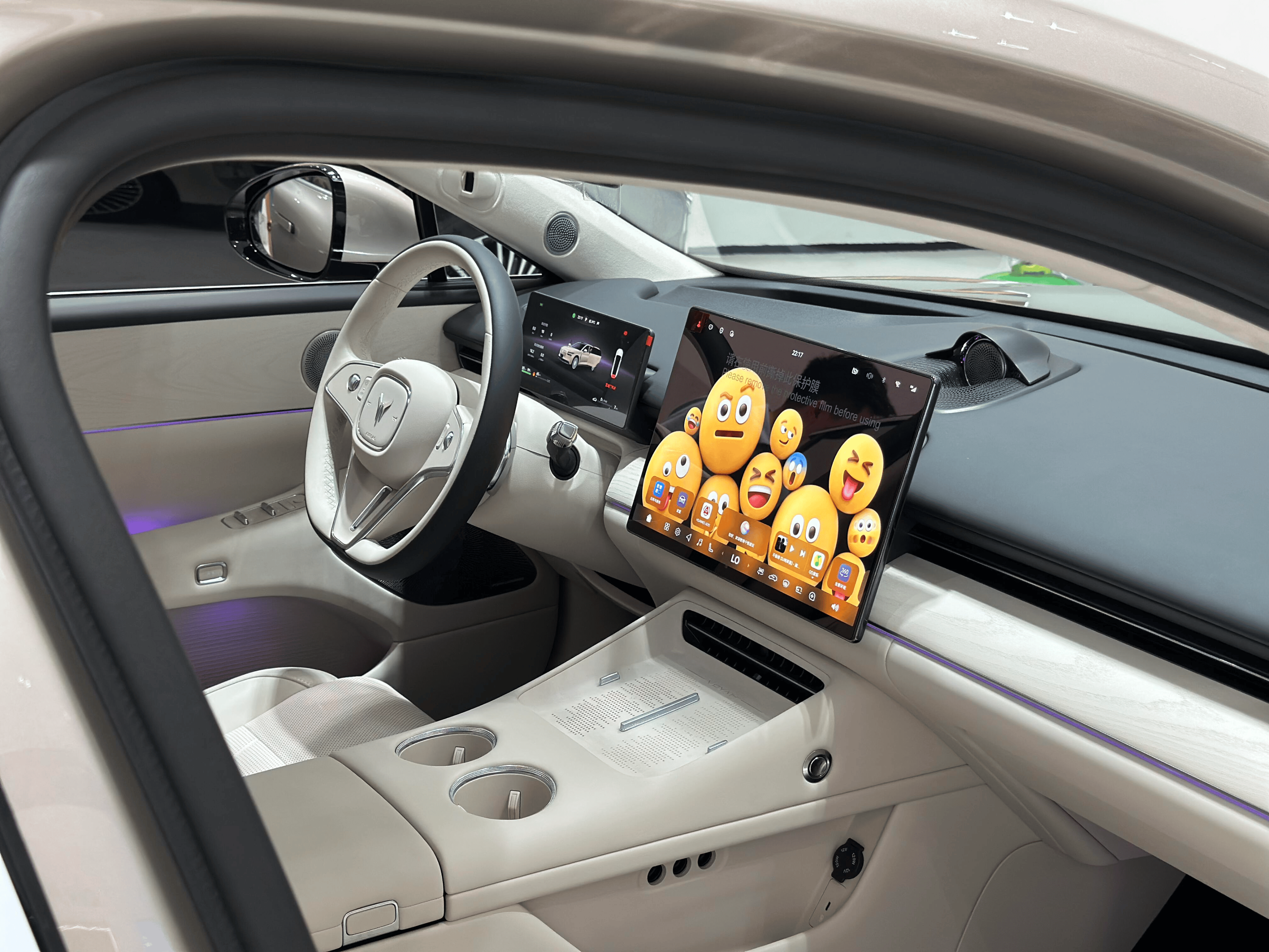 内饰提供红色(丹霞红)、白色等多种风格,简洁的环抱式座舱内配备16.1英寸3K悬浮式中控大屏、矩形全液晶仪表盘,再配合39英寸AR-HUD抬头显示,营造出满满的科技气息,并搭载鸿蒙座舱HarmonyOS 5.1操作系统,支持AI语音大模型。而大量皮质包覆配合真木饰板,再有电子怀挡、50W无线快充、氛围灯、中置扬声器、逐浪座椅绗缝的加持,又进一步提升了豪华气息。