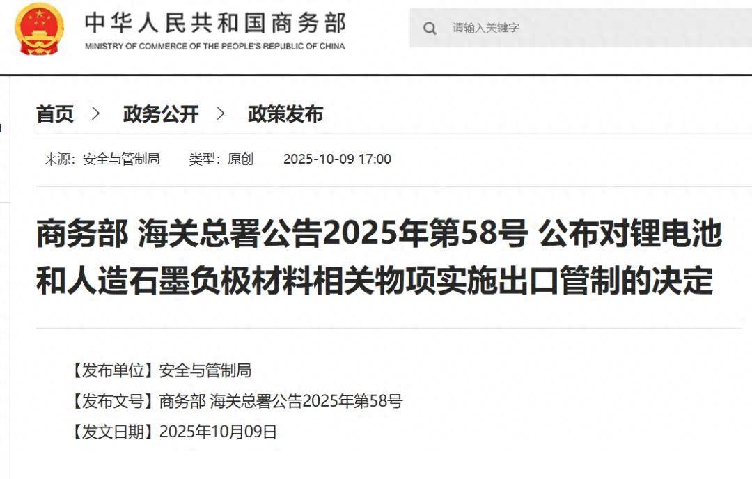 日前,中国商务部、海关总署联合发布公告,明确自2025年11月8日起对能量密度大于等于300 Wh/kg的锂离子电池实施出口管制。