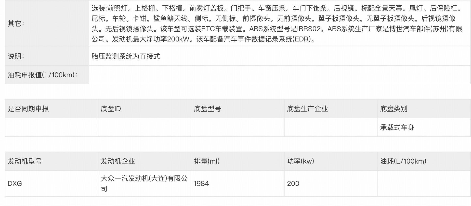 当然新车的核心之一在于动力,目前申报的是型号为DXG的2.0T发动机,最大功率200千瓦,最高车速250公里/小时;传动部分还是维持7速湿式双离合变速箱。不过海外版还有搭载EA839 3.0T Evo发动机的V6版本,零百加速仅4.7秒,但大概率不会引入国产。