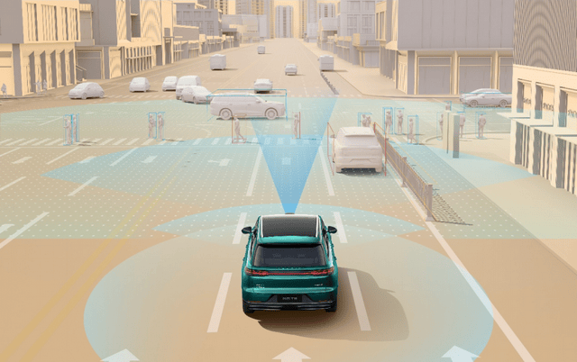 主动安全方面,风云T11全系标配AEB紧急制动系统。在智能驾驶辅助系统上,车辆配备了27个感知单元,包括3颗毫米波雷达、12颗超声波雷达、11个摄像头以及激光雷达,配合Orin Y芯片提供的200TOPS算力,实现了28项辅助驾驶功能,涵盖无保护左转、信号灯识别、无车道线通行等复杂场景。根据配置不同,分别搭载猎鹰500或猎鹰700辅助驾驶系统。