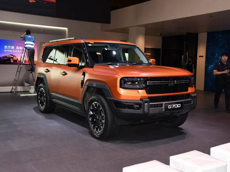 捷途纵横G700是一台对标坦克500系列的硬派中大型SUV,其使用非承载式车身结构,采用个性的方盒子造型,提供5座和6座两种座椅布局,高配车型还搭载华为乾崑智驾ADS 4。动力方面使用2.0T插混系统+前后双电机驱动,系统总功率为560kW,总扭矩为795牛·米,CLTC综合续航可以达到1400公里。此外,新车采用前后双叉臂的悬架形式,配有空气悬架,并且带有三把锁。