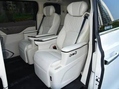 高山7也是MPV常见的2+2+3的7座布局,当然,它的空间自然是没有高山8大,但对于家庭用户来说绰绰有余,至少要比当下市面上那些全尺寸的三排座SUV要强。二排是带腿托的独立座椅,包括冰箱、后排吸顶屏、二排小桌板这些配置也都没有缺席。