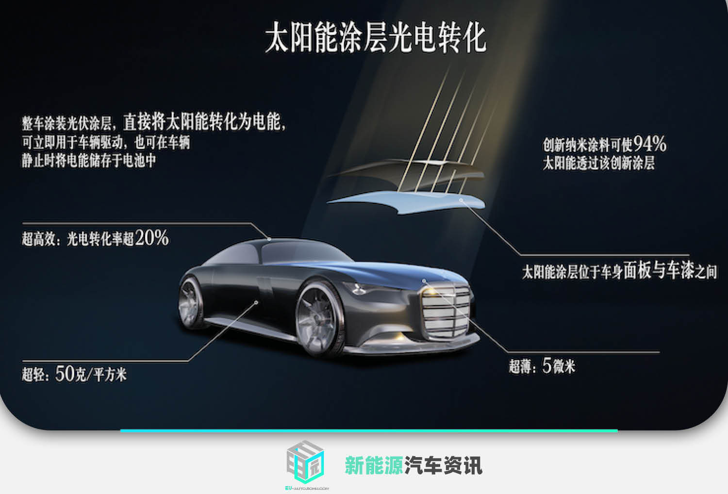 技术方面,梅赛德斯-奔驰研发中的创新太阳能模块可以像极薄膏体般无缝涂覆于电动车车身。这种光伏活性表面可适配各种基底。当Vision Iconic概念车的整车表面都涂覆太阳能涂层时,可通过太阳能为车辆增加续航。里程的多少取决于地理位置和当地环境条件。太阳能电池拥有高达20%的效率,即使车辆处于熄火状态时也能持续发电。