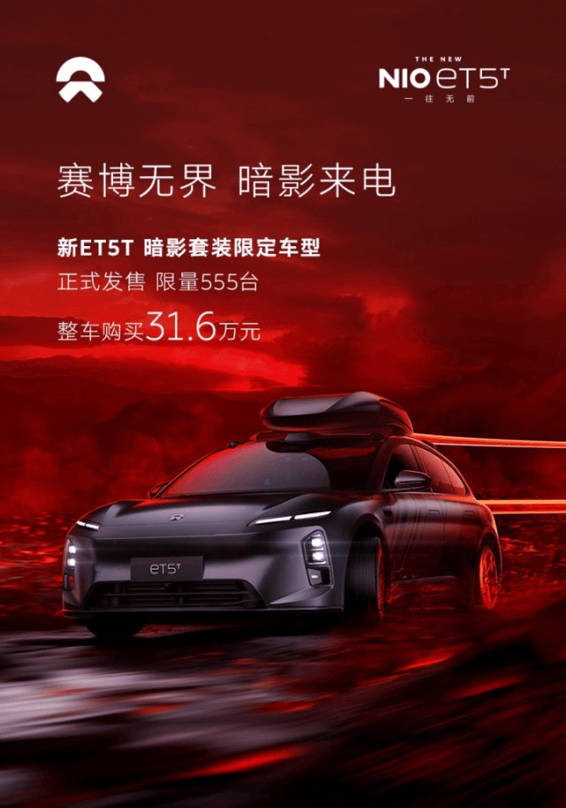 (10月17日,上海)蔚来新ET5T暗影套装限定车型正式上市,整车售价31.6万元,采用BaaS电池租用方式购买,售价为20.8万元,限量555台。