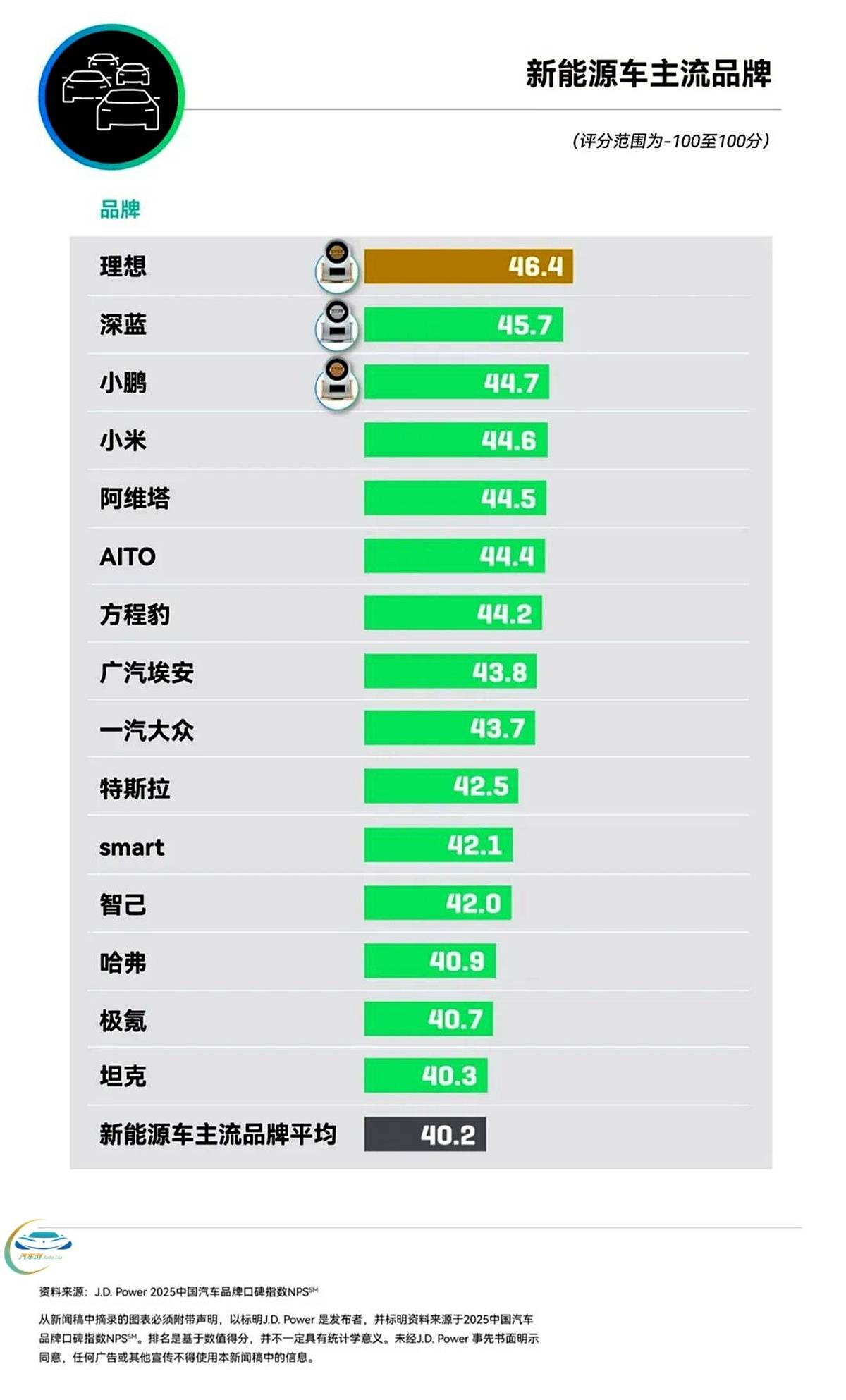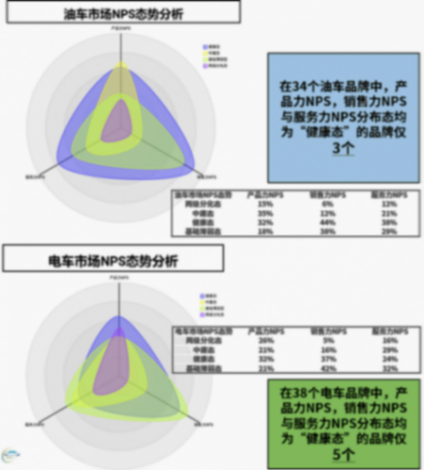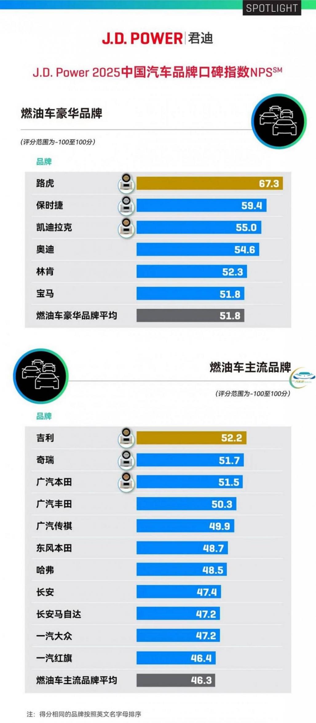 汇总之后,J.D.Power分析认为:“燃油车品牌产品力NPS为中庸态的占比达到35%,体现出其产品稳健却缺乏亮点,用户‘没有不买的理由,也没有推荐的冲动’;在社交媒体时代,缺乏可传播的‘记忆点’和‘谈资’,难以形成主动推荐。而新能源车品牌产品力NPS为两极分化态的占比为26%,即部分品牌以先锋创新吸引早期用户,但因激进创新导致体验争议,劝退了保守型消费者,形成‘内部抵消’。当‘安全’和‘炫技’都无法单独构成推荐理由时,行业必须重新定义‘好产品’——既要解决核心痛点(质量、安全),又要创造能激发情感共鸣和社交分享的创新体验。”