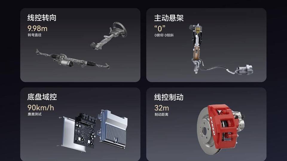 在底盘与制动上,奇瑞把“安全与可控”做成基础设施。飞鱼底盘发布EMB电机直驱制动,强调毫秒级响应、三重冗余、免维护,可实现32.米的百公里制动距离。这颠覆了以往被动感知、单一控制的底盘调校方式,通过软件定义底盘,实现对车辆姿态的精确控制。