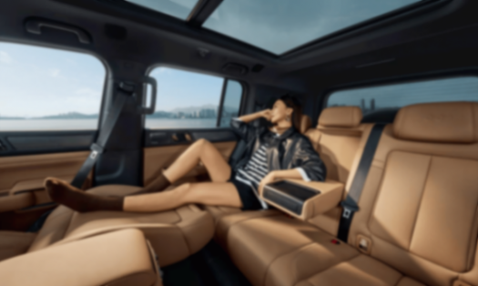 车内增加雪隐灰内饰色,后排腿部空间及后备箱储物空间进一步增加,同时还可选装副驾及后排多向大腿托以及双开门高压冰箱,将大5座的优势发挥出来,带来更宽敞的乘坐空间和舒适体验。