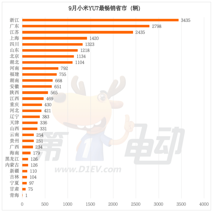 随着产能的持续爬坡,小米YU7有望在更多省份实现销量突破。